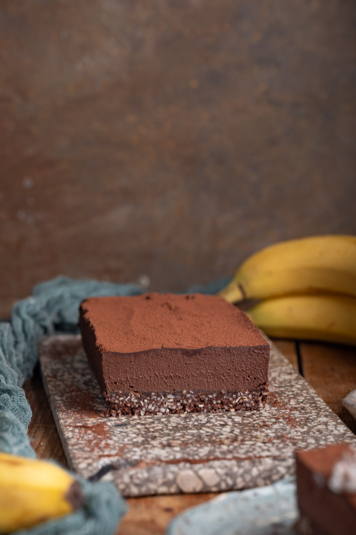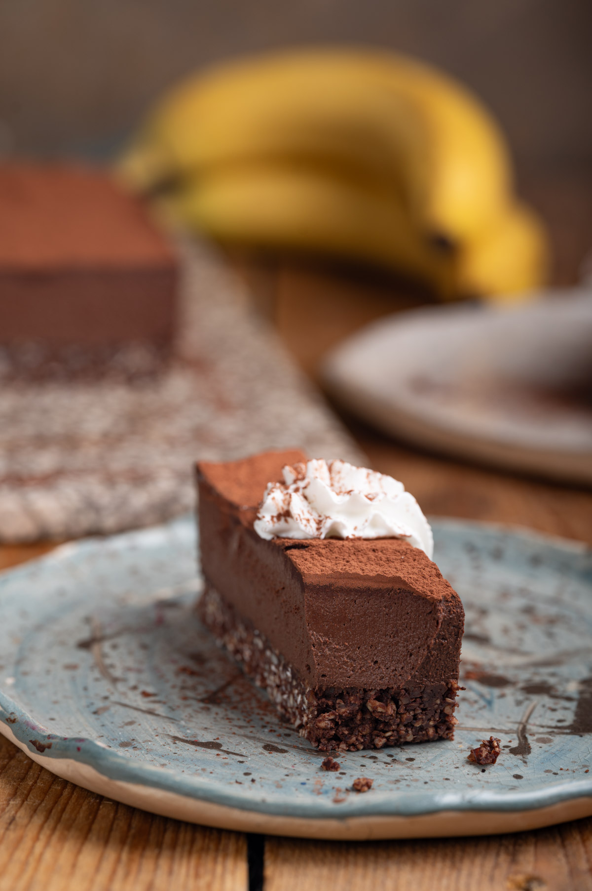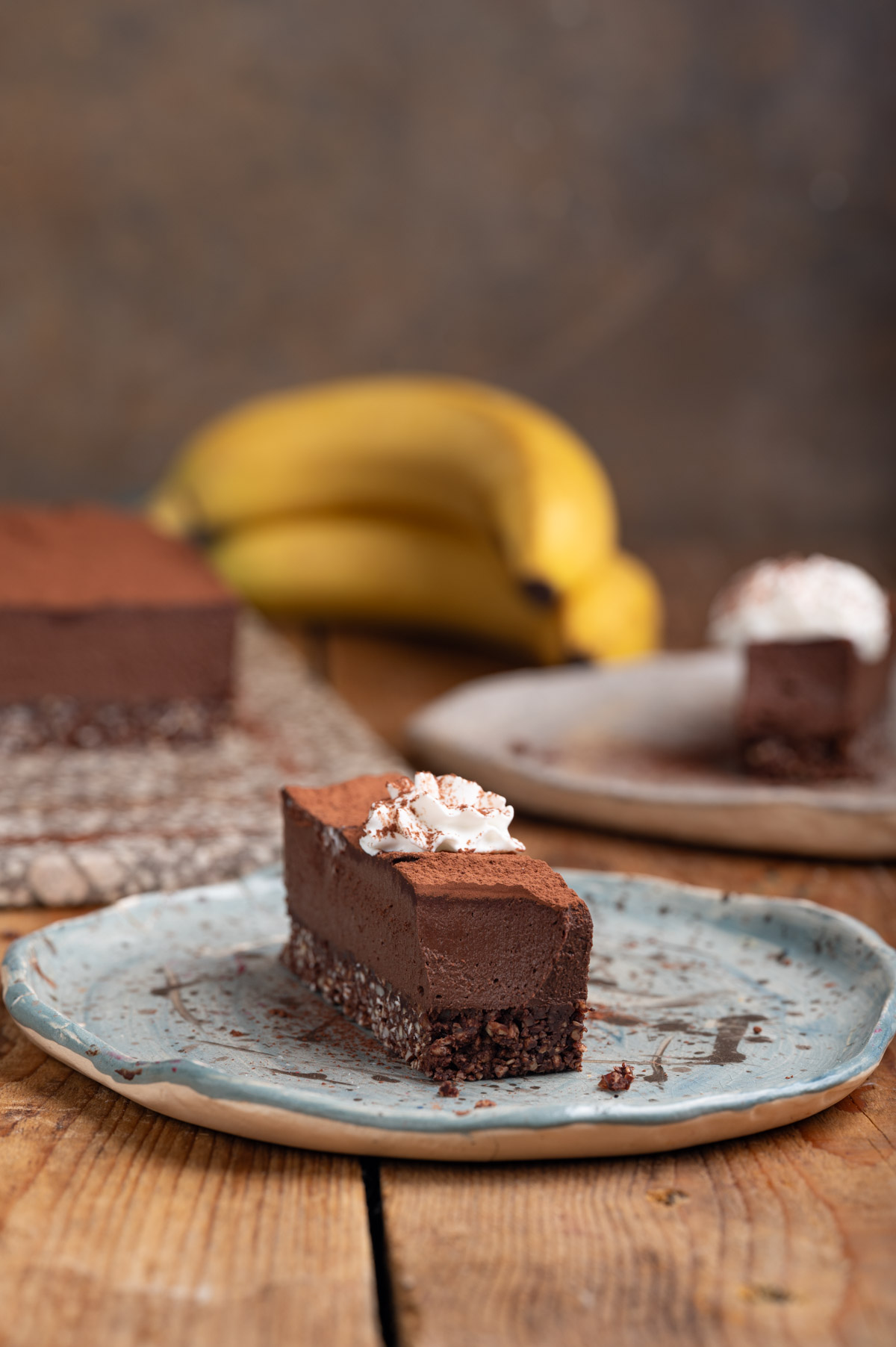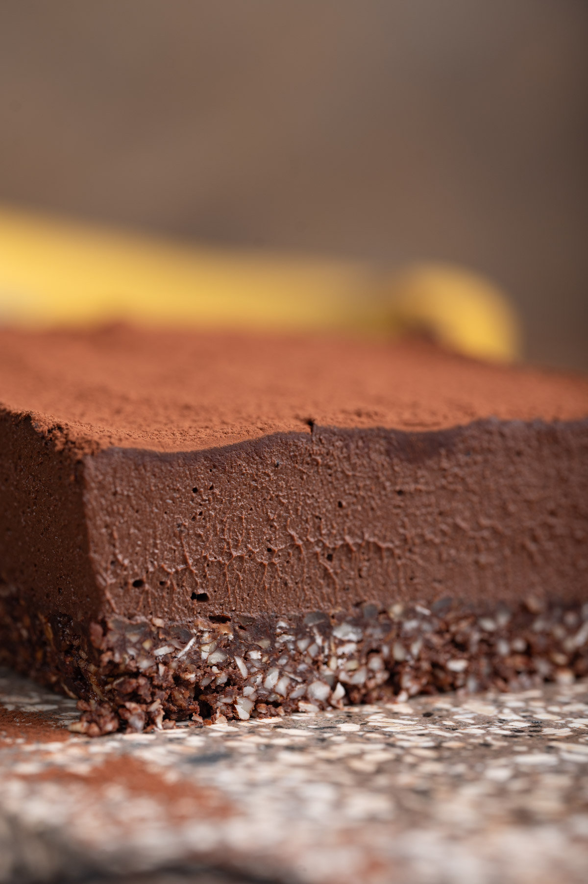 Te rezine nikakor ne potrebujejo peke, da se ponašajo s polnim okusom in izjemno teksturo. Bogato kakavovo dno iz mandljev in ovsenih kosmičev predstavlja drzno podlago nežni in puhasti bananini kremi.