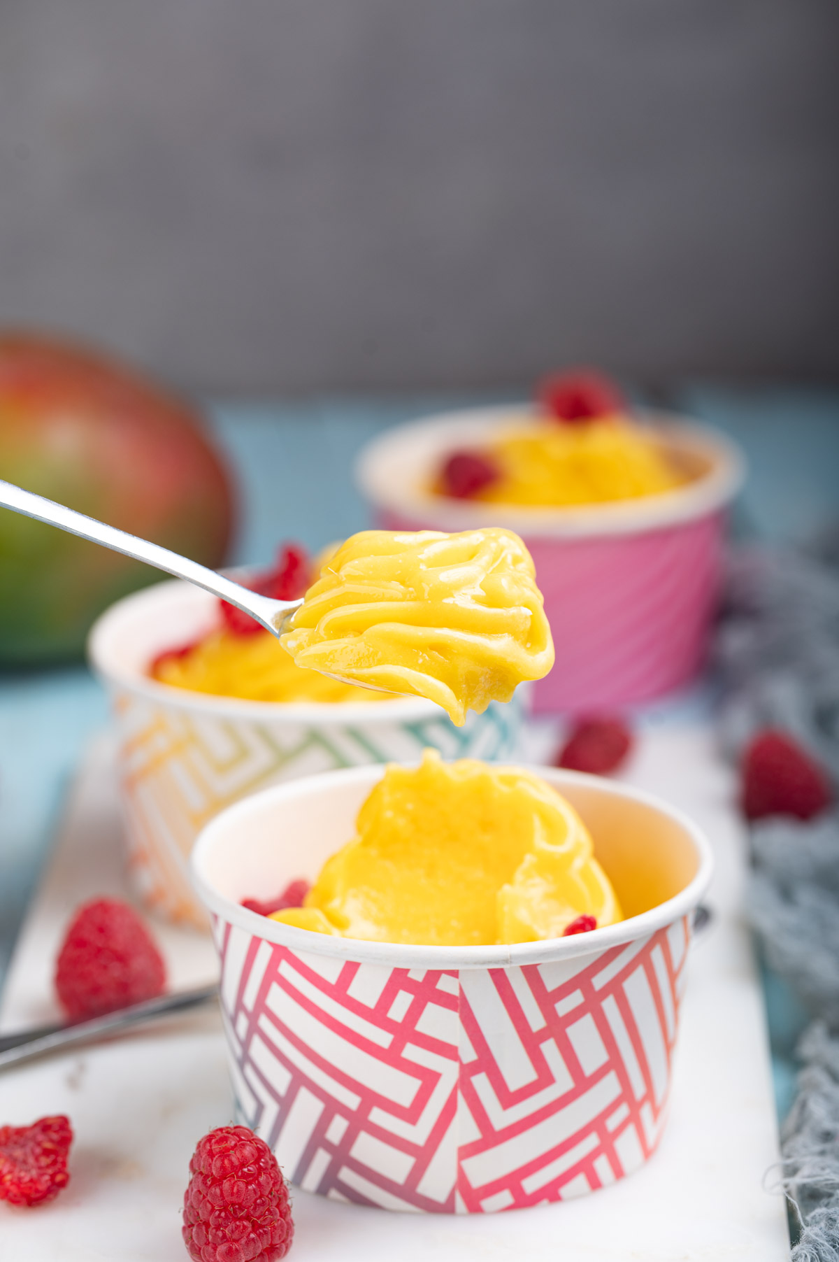 Z zamrznjenim mangom lahko prideš do lastnega sadnega sladoleda precej hitreje in udobneje kot s pešačenjem po vročini do prve trgovine.