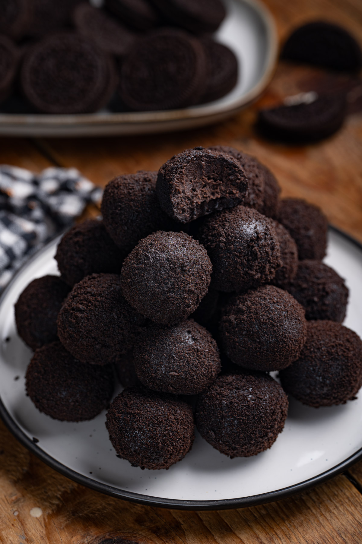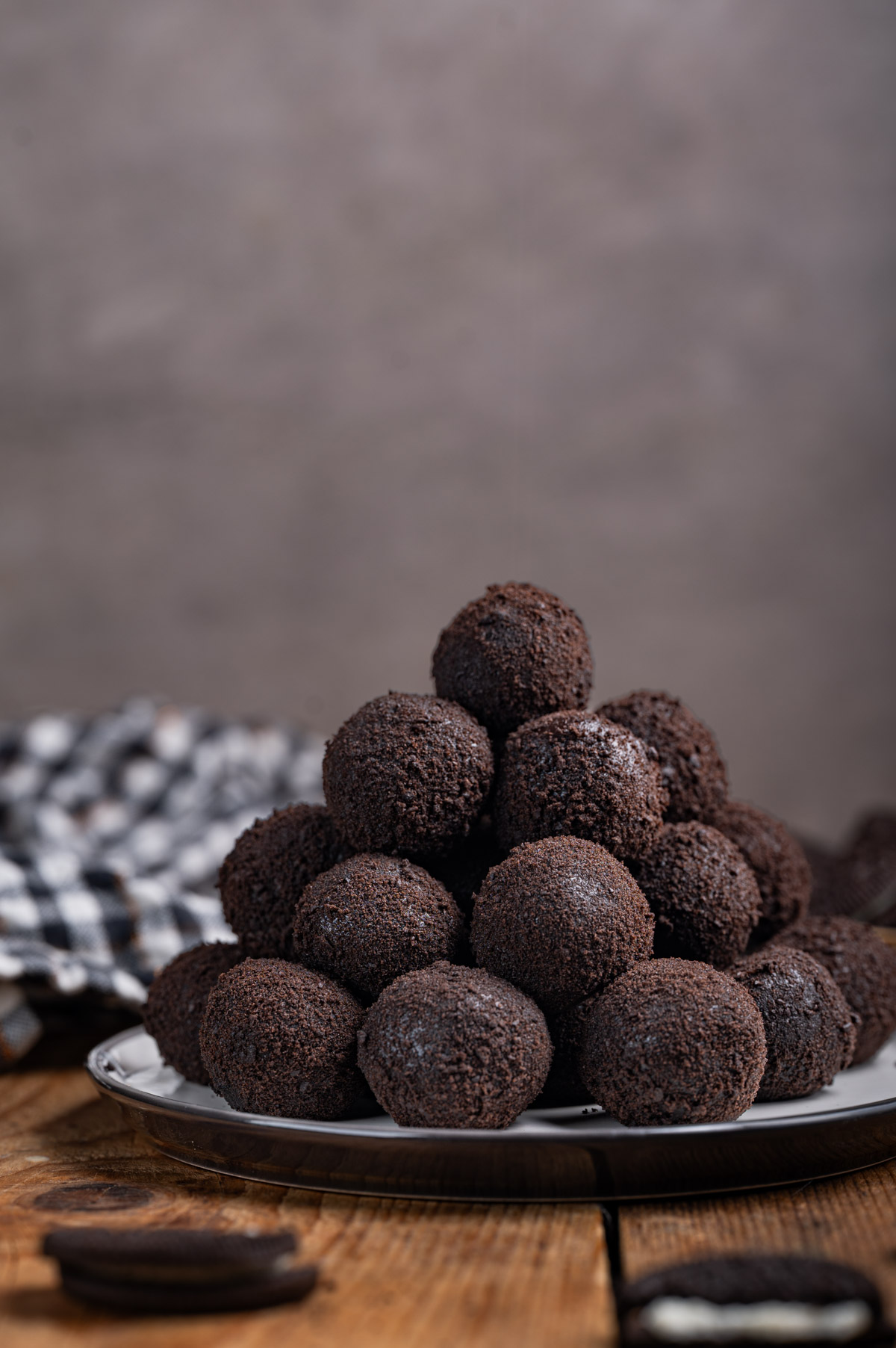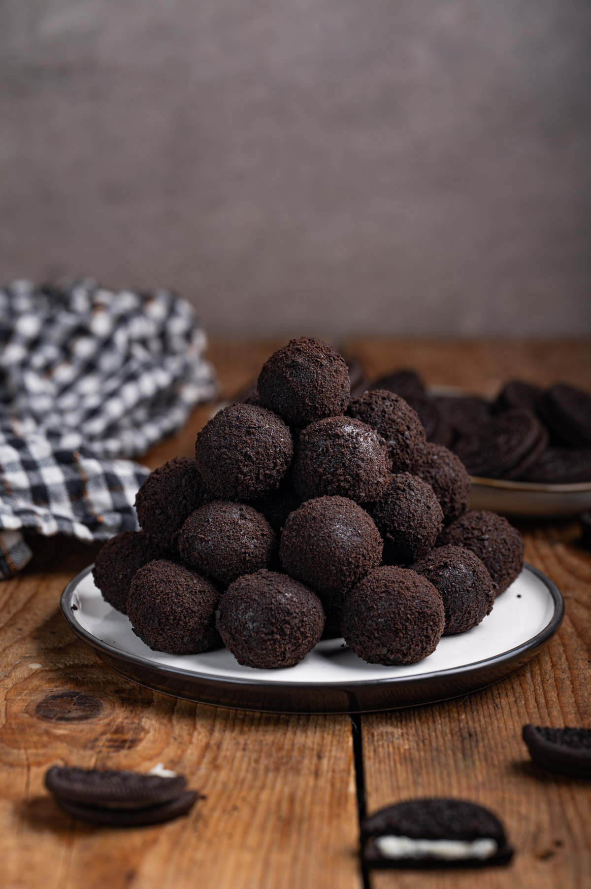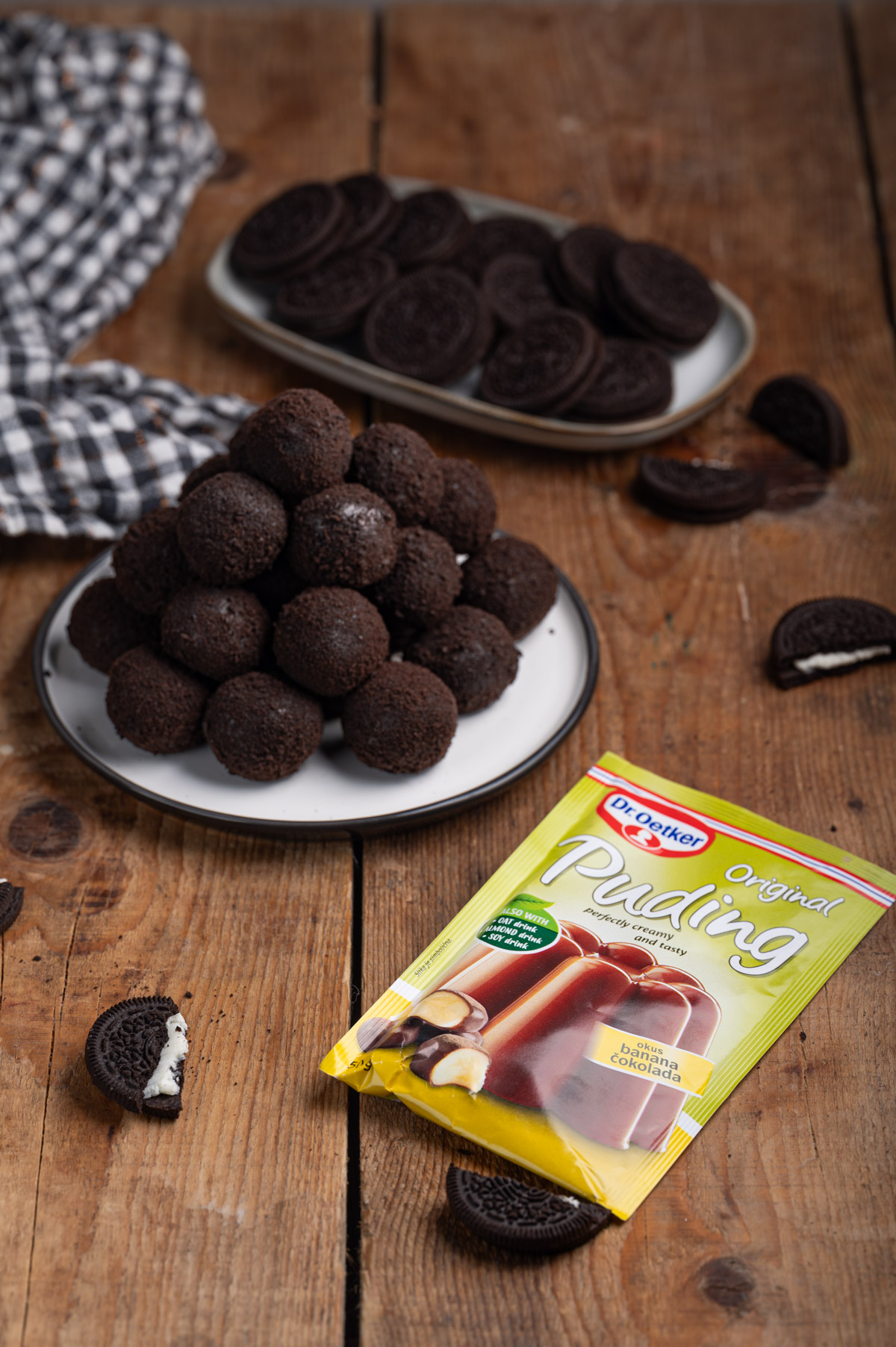 - Vsako kroglico povaljaj v OREO prahu.