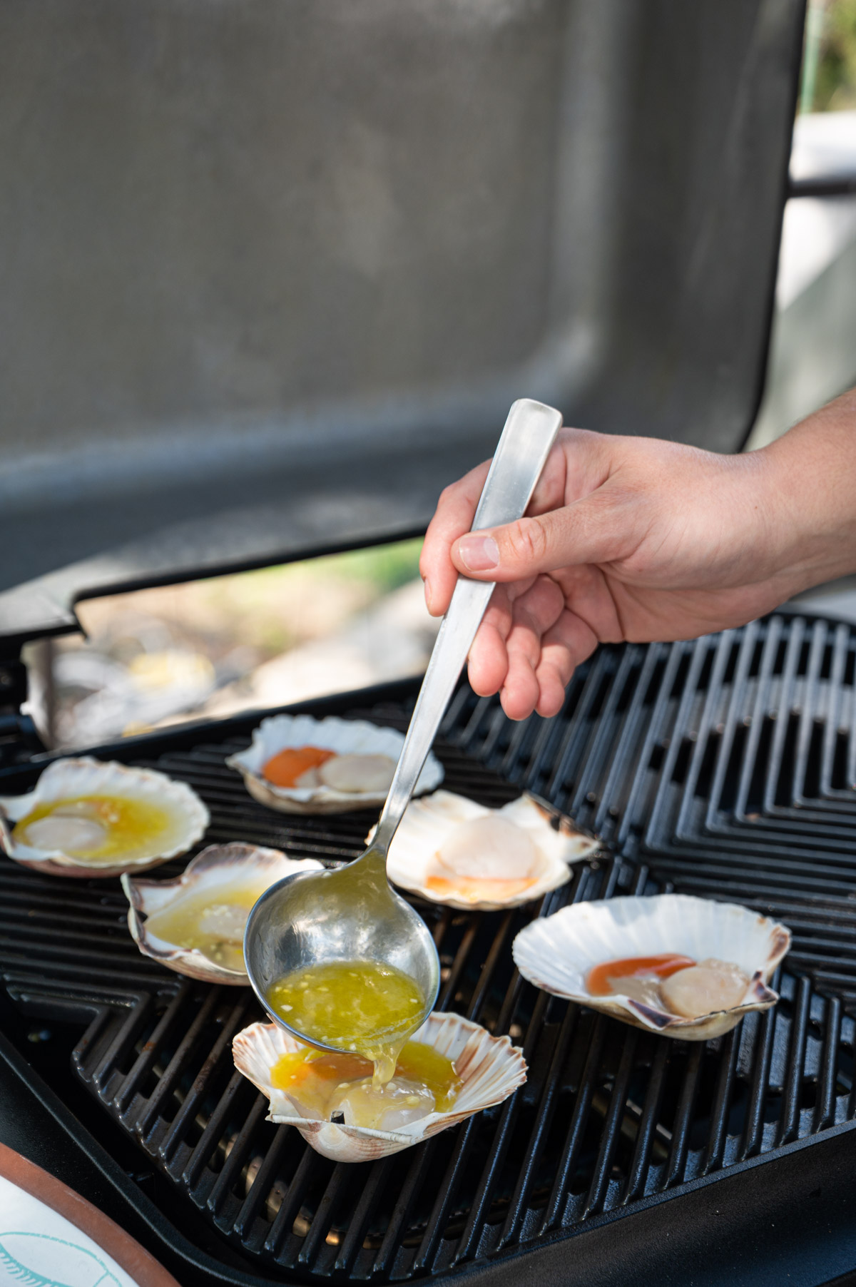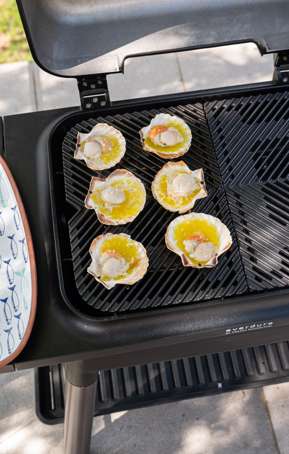 - Vžgi en gorilnik žara Everdure Force, ker potrebuješ za 6 školjk le polovico njegove površine.