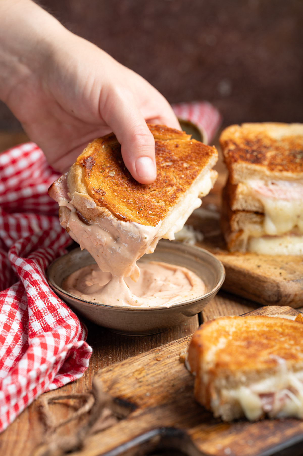 Tale popečen sendvič je nalašč za take trenutke – dve rezini hrustljavo zapečenega in z maslom natrtega kruhka, vmes pa mortadela in stopljen tris italijanskih sirov. Ko ga razpoloviš in se sir vleče kot ponedeljek, je vsaka skrb pozabljena.