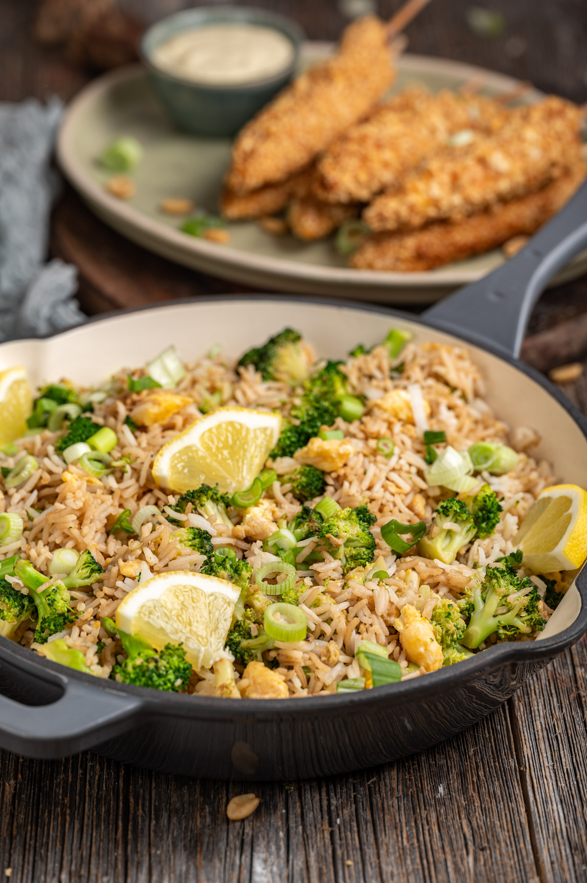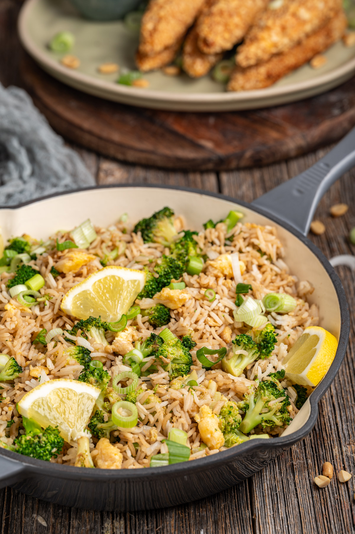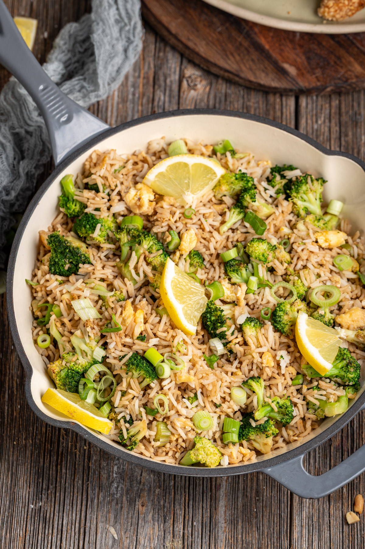 Pogosto se zgodi, da nam po kuhi ostane kupček riža, ki v naslednjih dneh najde svoje mesto v številnih drugih jedeh. Med bolj okusne načine predelave spada tale recept, ki se spogleduje z azijsko pripravo praženega riža. Med brskanjem po ponvi lahko najdeš umešano jajce, ravno prav čvrst brokoli, mlado čebulo in na hitro popražen riž, obogaten s sojino omako in limono.